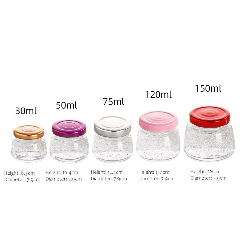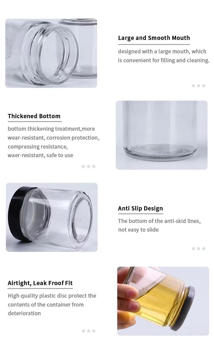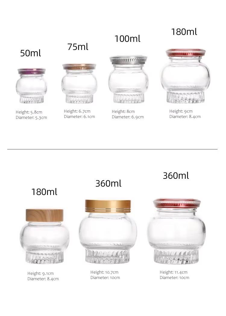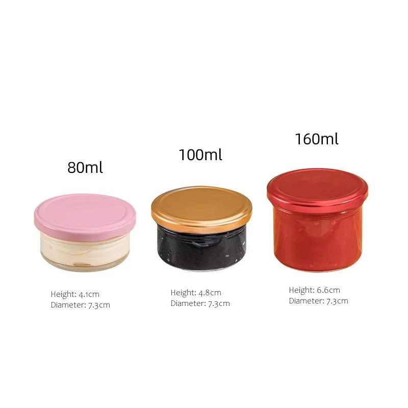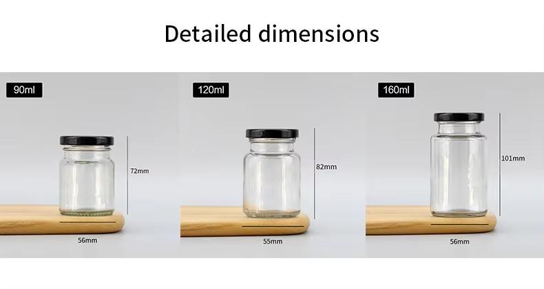 Detailed dimensions: 90ml Round glass jar, 120ml Round glass jar, 160ml Round glass jar,