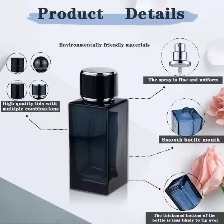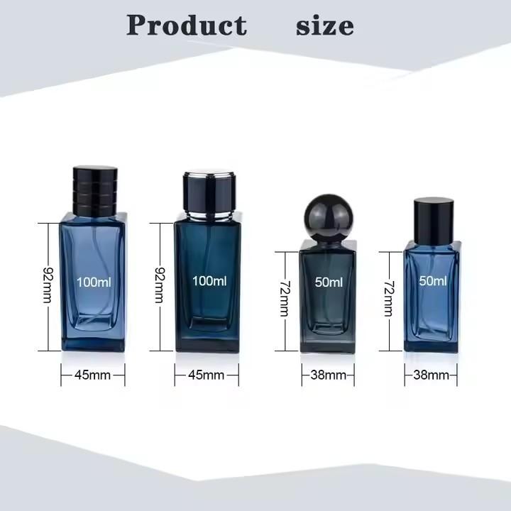 Glass Perfume Bottle Packaging 50ml 100ml Clear Blue Black Portable Square Luxury Empty Perfume Bottle With Sprayer Inquiry Send Email