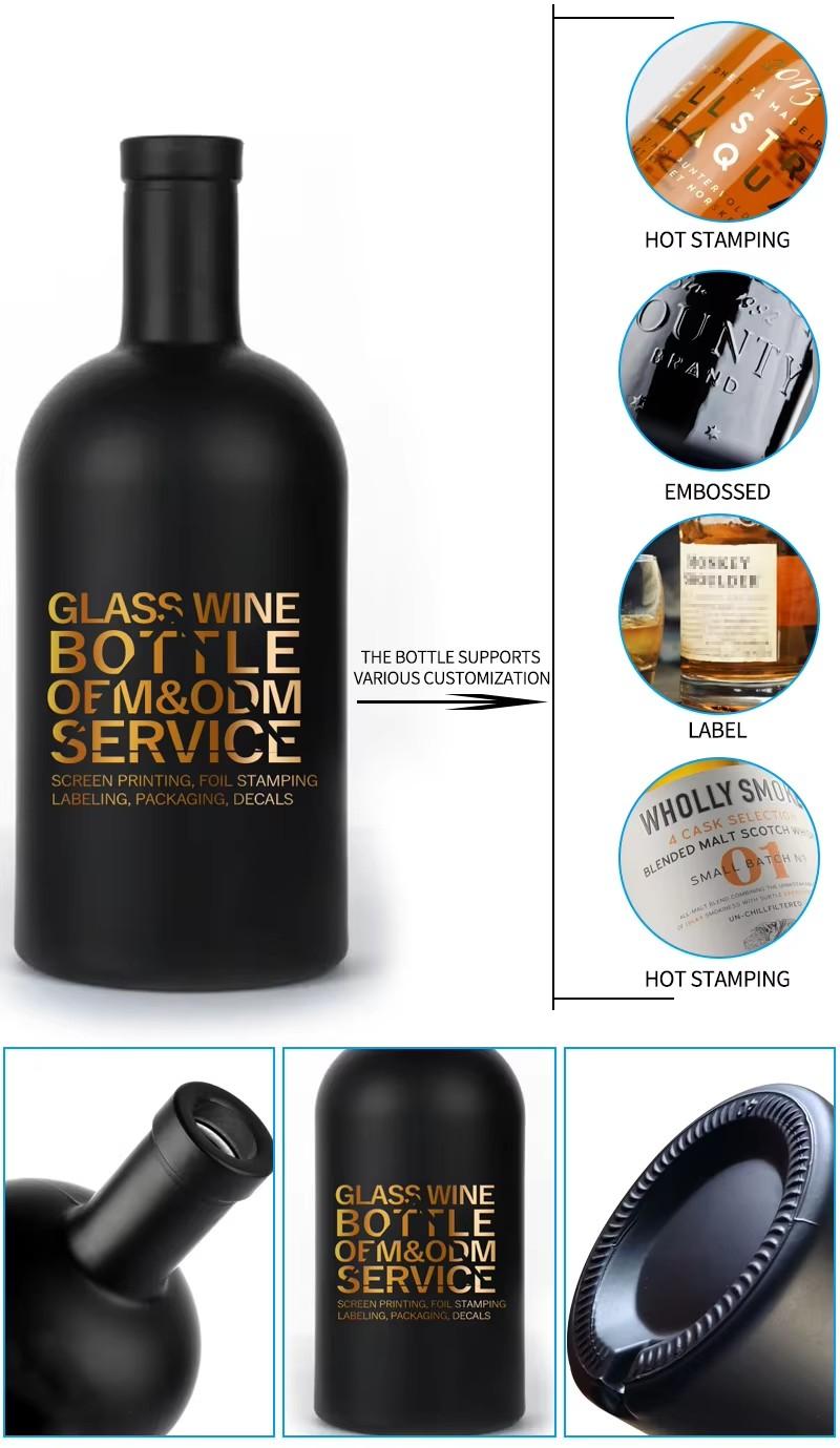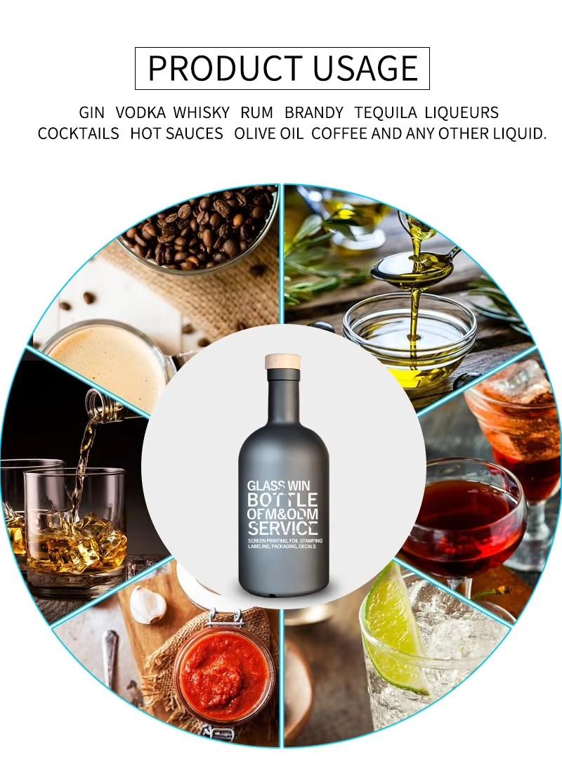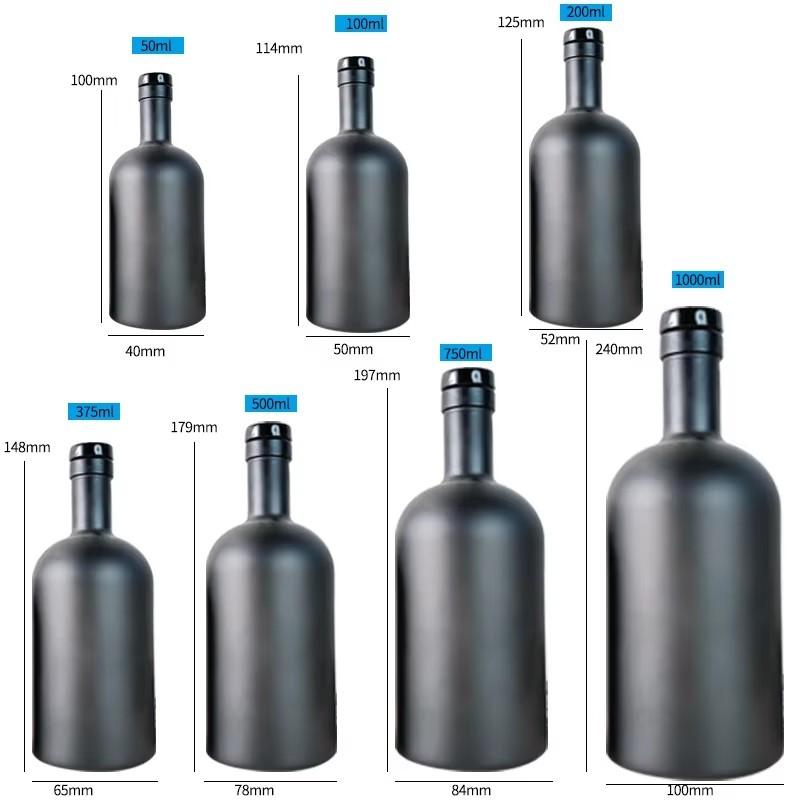 Product Name: Top selling Vodka matte black 50ml 100ml 200ml 375ml 500ml 750ml 1000ml glass bottle with Rubber Stopper