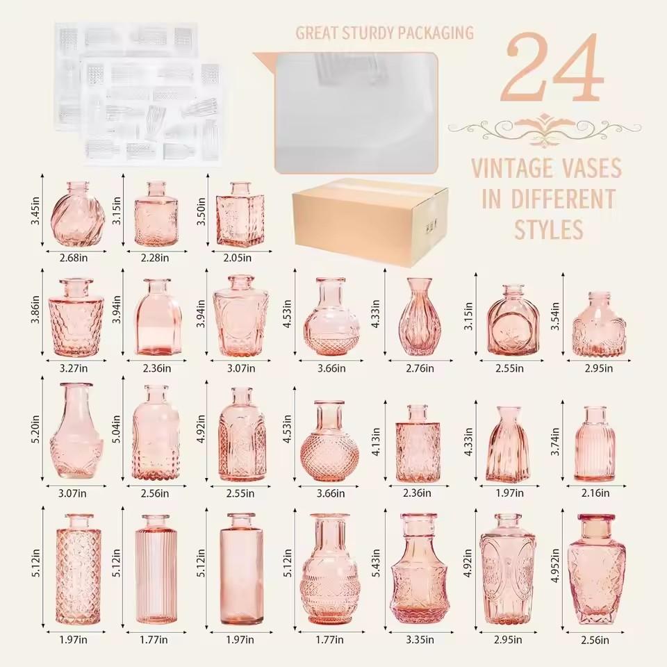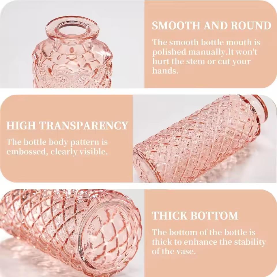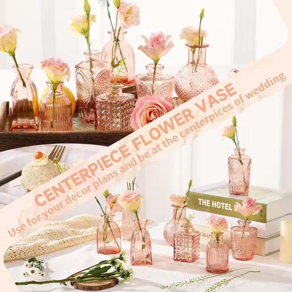 Wholesale Pink Vintage Small Glass Bud Vase Cute Glass Bottle Vases for Centerpieces Rustic Decorative Wedding Table Home Inquiry Send Email