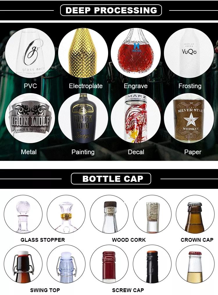 • Empty Glass Bottle Vodka Gin Rum Alcohol Whiskey Bottle Extra White Flint 750ml 1000ml Liquor Bottles