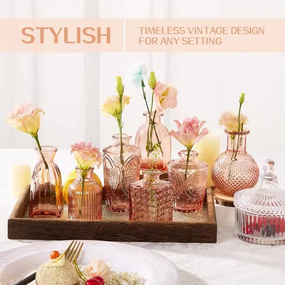 Wholesale Pink Vintage Small Glass Bud Vase Cute Glass Bottle Vases for Centerpieces Rustic Decorative Wedding Table Home Inquiry Send Email